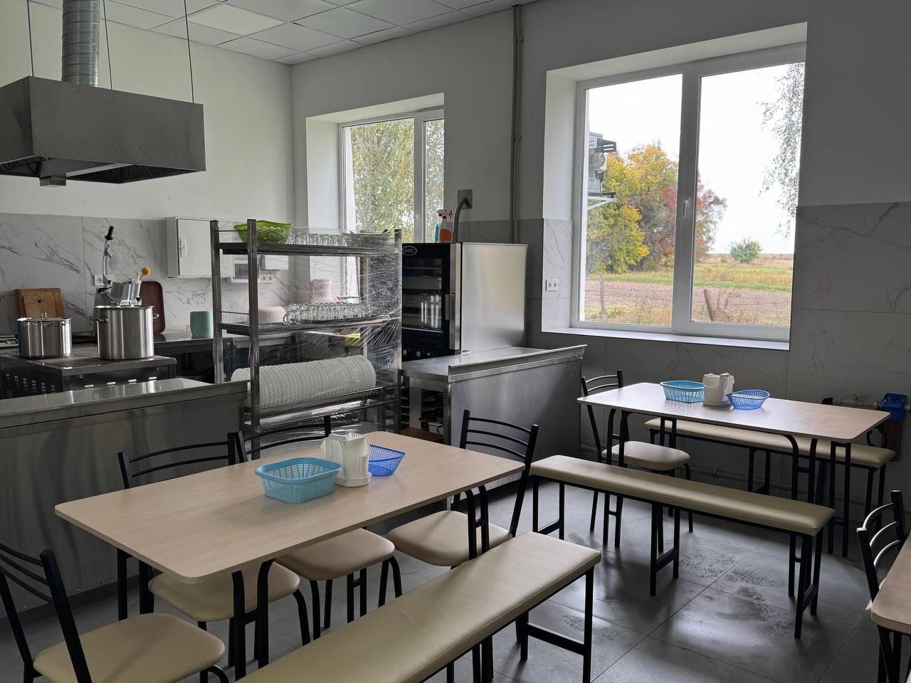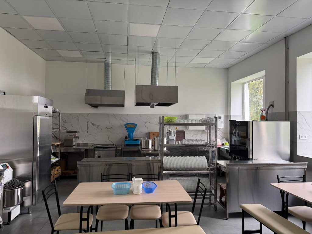 Новий харчоблок виконано у форматі відкритої кухні-студії, що дозволяє організувати прозорий процес приготування страв і забезпечити високий рівень контролю за якістю харчування. Серед основного – пароконвектомат, морозильна камера, холодильник, електрична плита з духовою шафою та електропательня. Також облаштовано систему професійних витяжок, встановлено нові меблі, посуд і все необхідне кухонне приладдя.