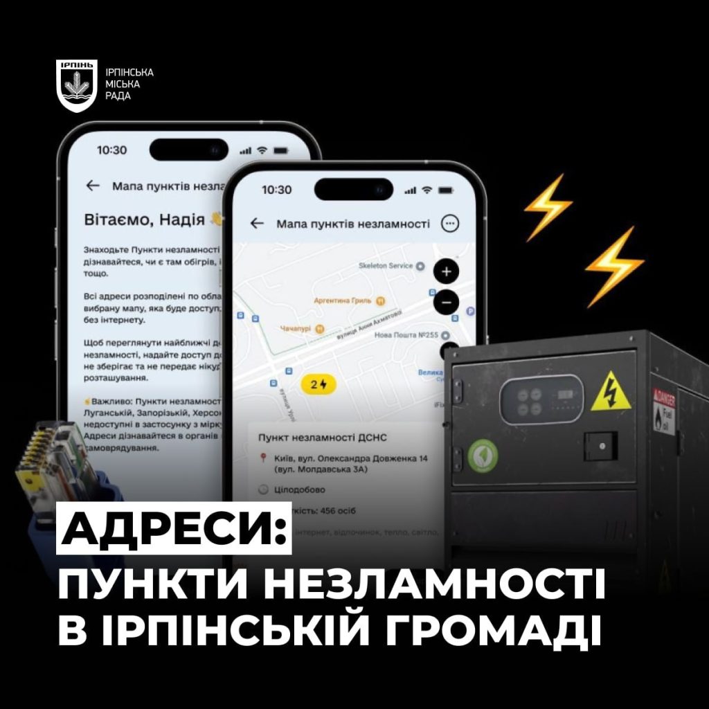 Нагадую що в Ірпінській громаді працюють 6 пунктів незламності, де можна зігрітися, зателефонувати рідним, випити чаю та зарядити гаджети.