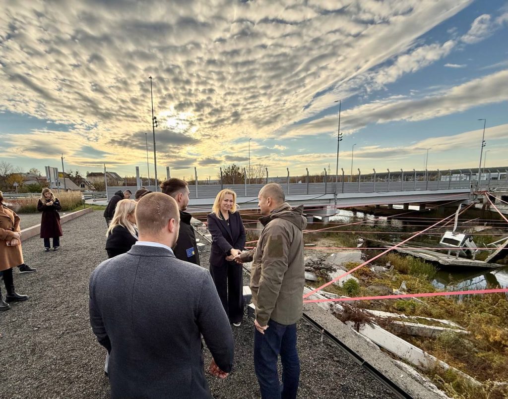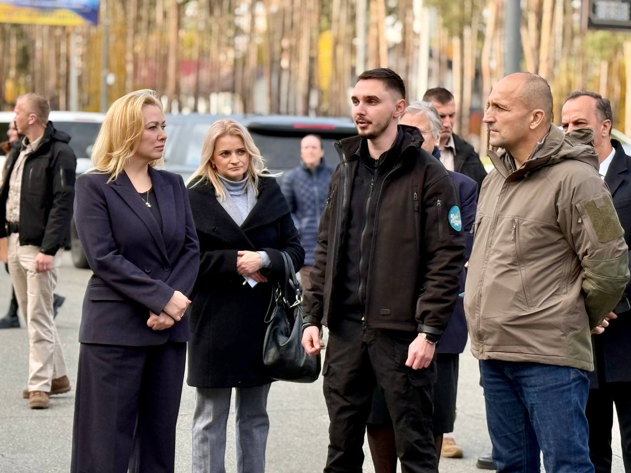Мовчазне нагадування про брехливого ворога, який “не б’є по цивільних”, але тільки у своїй пропаганді — цвинтар знищених автомобілів. Побували також біля залишків зруйнованого мосту через річку Ірпінь, на меморіальному комплексі “Дорога життя”. Розповіла пану Міністру історії з перших днів вторгнення — як люди після підриву мосту перепливали річку з крижаною водою, щоб потрапити на інший берег.