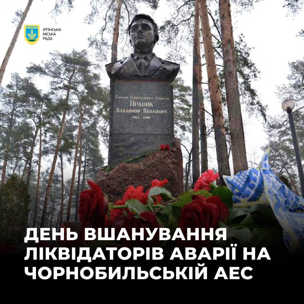 Сьогодні, напередодні Дня вшанування учасників ліквідації наслідків аварії на ЧАЕС, Ірпінська громада вшановує пам’ять нашого земляка — пожежного-ліквідатора Володимира Правика, який першим разом зі своїм караулом прибув на Чорнобильську АЕС у трагічну ніч аварії 26 квітня 1986 року.
