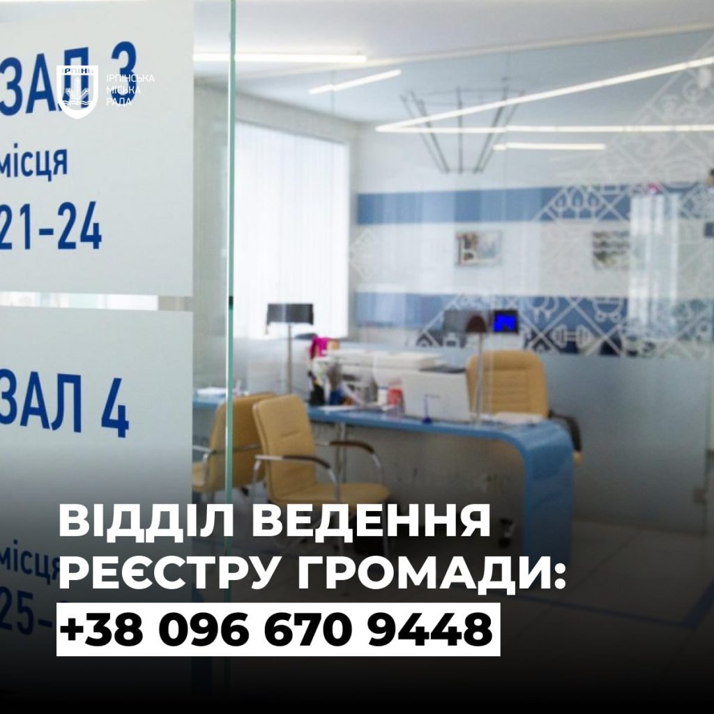 Відтепер із питань, пов’язаних із роботою відділу ведення реєстру територіальної громади, можна звертатися за новим номером телефону: +380966709448