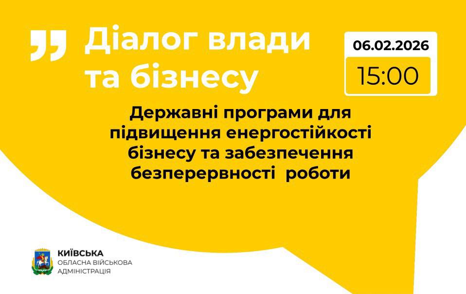 6 лютого 2026 року о 15.00 год в форматі онлайн запланована нарада щодо державних програм для підвищення енергостійкості бізнесу та забезпечення безперервності їх роботи.
