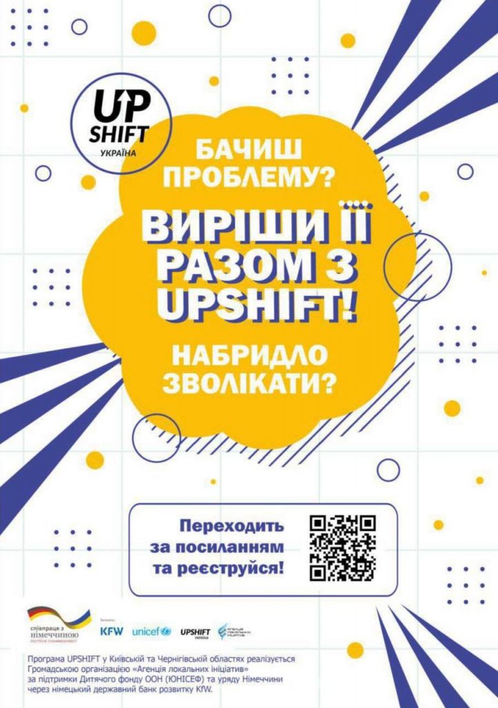 Програма UPSHIFT у Київській області реалізується Громадською організацією «Агенція локальних ініціатив» за підтримки Дитячого фонду ООН (ЮНІСЕФ) та уряду Німеччини через німецький державний банк розвитку KfW.