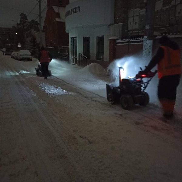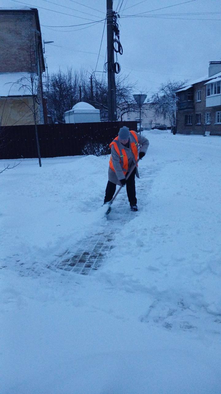 Техніка задіяна на основних вулицях, у дворах і біля соціальних об’єктів. Триває розчищення снігу та обробка покриття протиожеледними матеріалами.