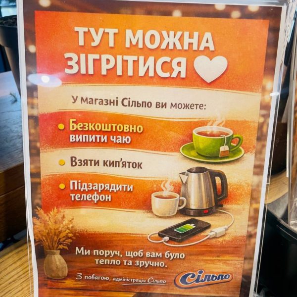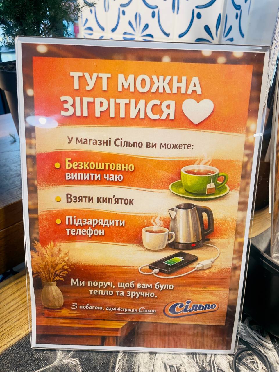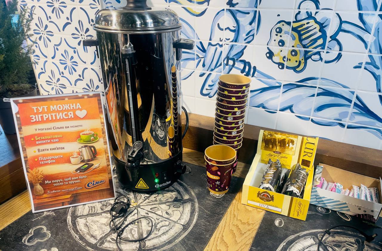 Тут пригощають людей гарячим чаєм і є можливість підзарядити мобільні пристрої.