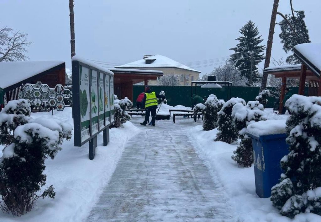 Через безперервний снігопад деякі ділянки доводиться очищати повторно. Залучено 18 одиниць техніки. Працюють бригади ручного прибирання. Загалом по громаді працює понад 100 комунальників.