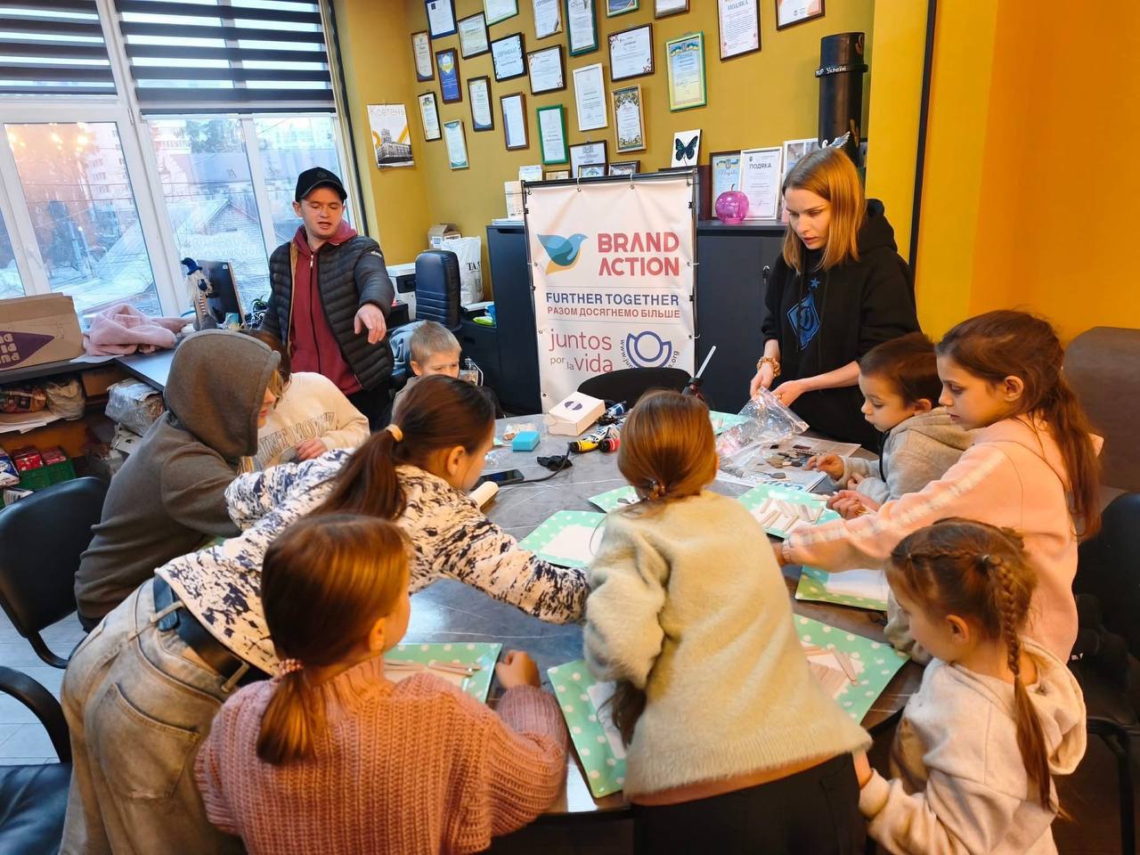 Організація працює з внутрішньо переміщеними особами ще з 2014 року. У грудні 2015-го відкрили один із перших на Київщині Громадський центр по роботі з ВПО. Надають відвідувачам різнопланову допомогу: гуманітарну, психологічну, матеріальну, юридичну. Проводять навчальні тренінги і терапевтичні зустрічі. Крім того, допомагають медичним обладнанням лікарням, а для військових плетуть маскувальні сітки і готують енергетичні батончики. І це – далеко не повний перелік їхніх добрих справ.