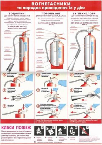 Приміщення мають бути забезпечені первинними засобами пожежогасіння, вогнегасниками відповідно до встановлених норм.