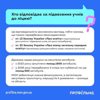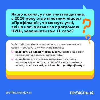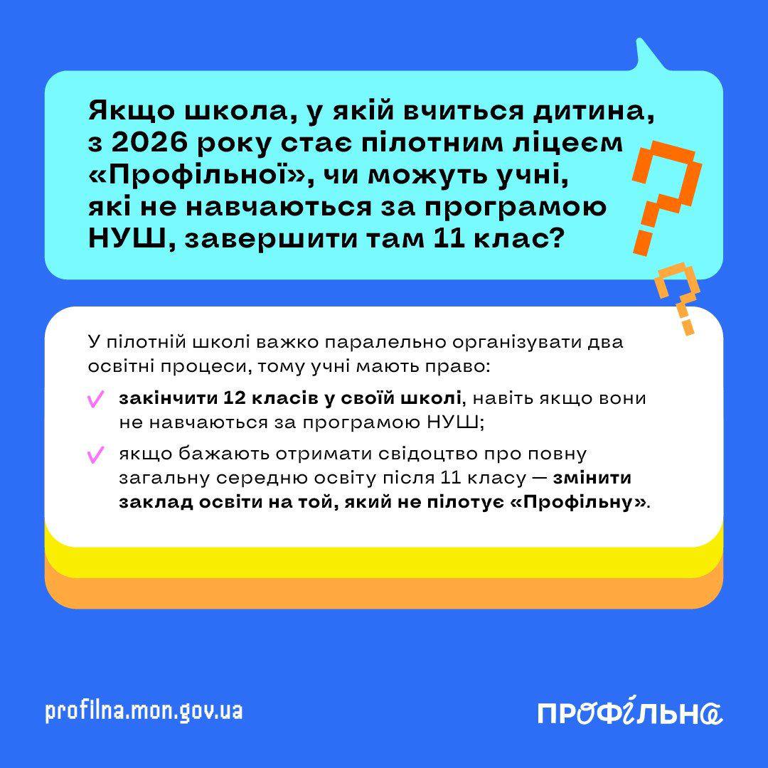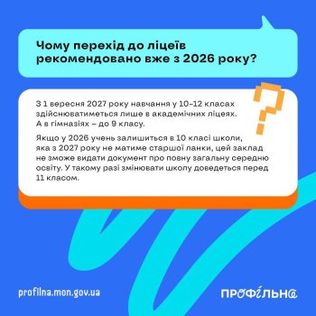 Відповіді на найпоширеніші запитання щодо переходу до нової моделі старшої школи дивіться в інфографіках.