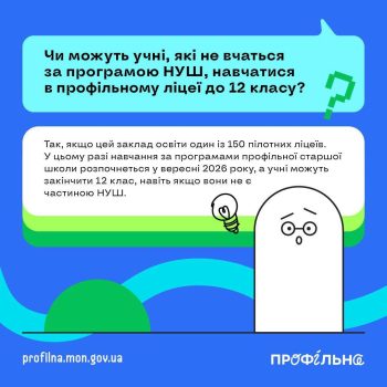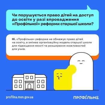 Запуск “Профільної” реформи старшої школи запланований з 1 вересня 2027 року, а з 1 вересня 2026 розпочинається пілотування у 150 закладах освіти.