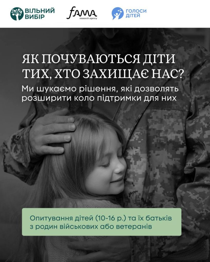 Опитування розраховане на дітей (10–16 років) та одного з батьків або законних опікунів.
