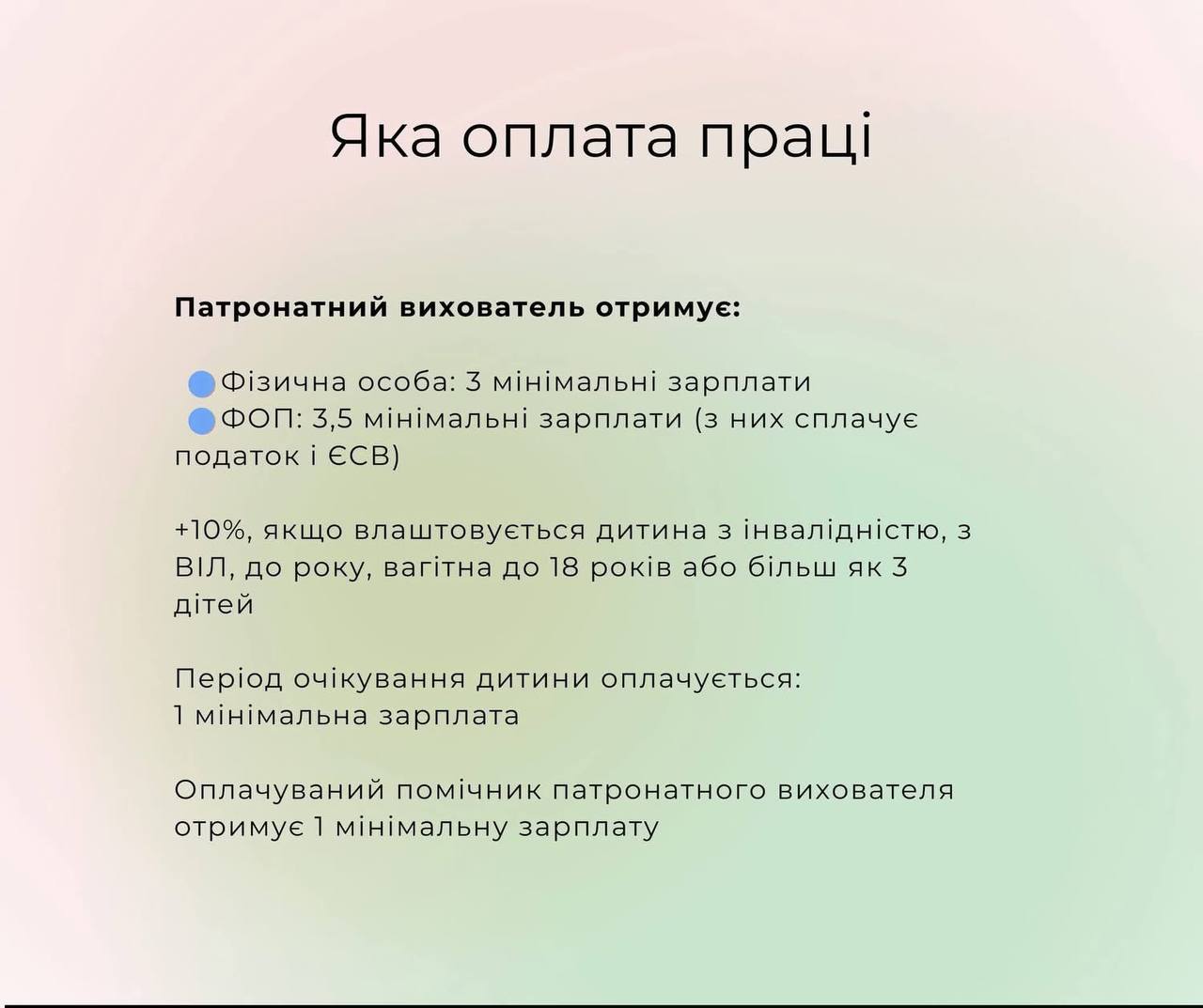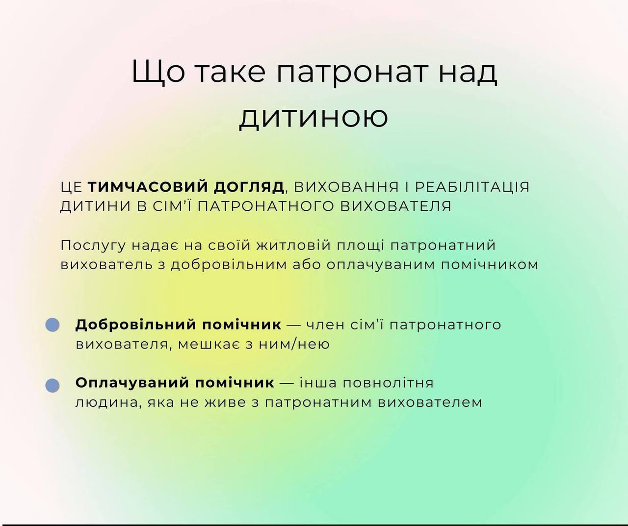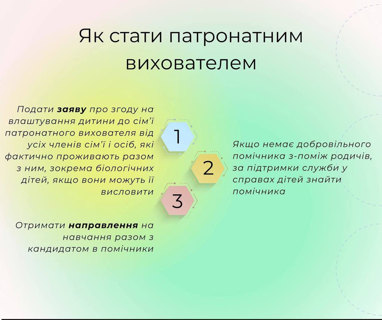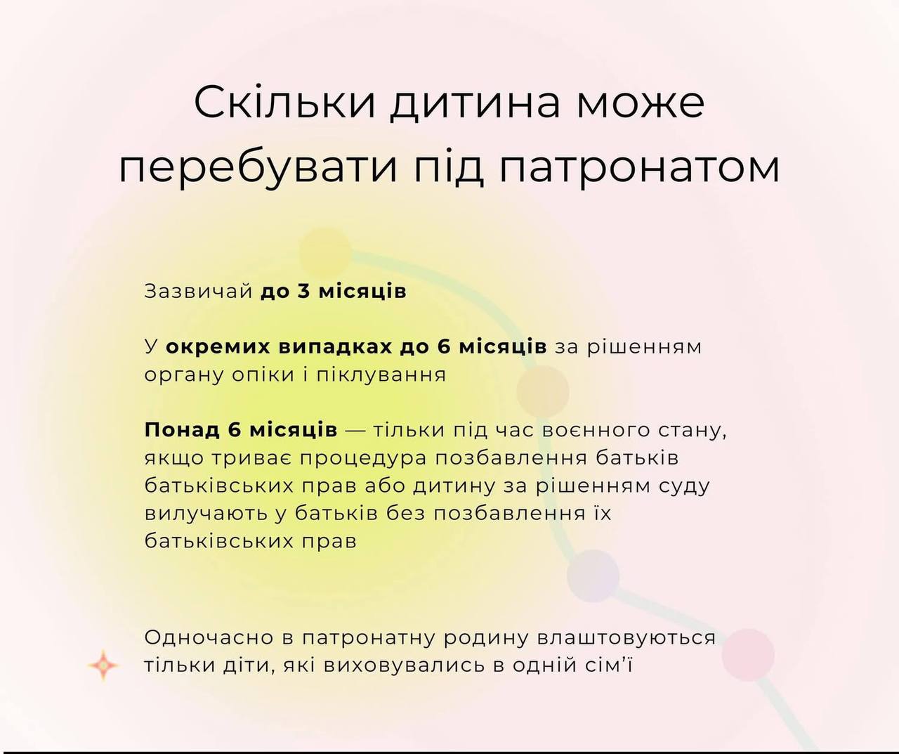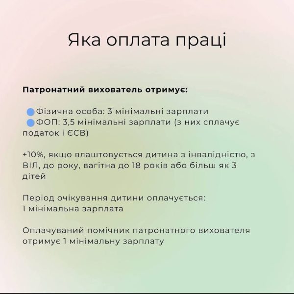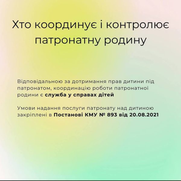 Як створити патронатну родину, які умови роботи та яка оплата праці — пояснює в картках Державна служба України у справах дітей.