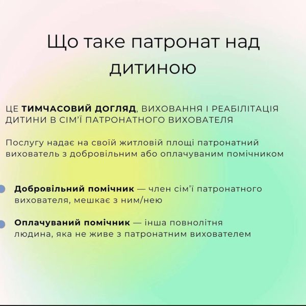 Патронат над дитиною — це послуга, яка дозволяє дітям залишатися в сімейному середовищі навіть тоді, коли батьки тимчасово не можуть про них піклуватися.