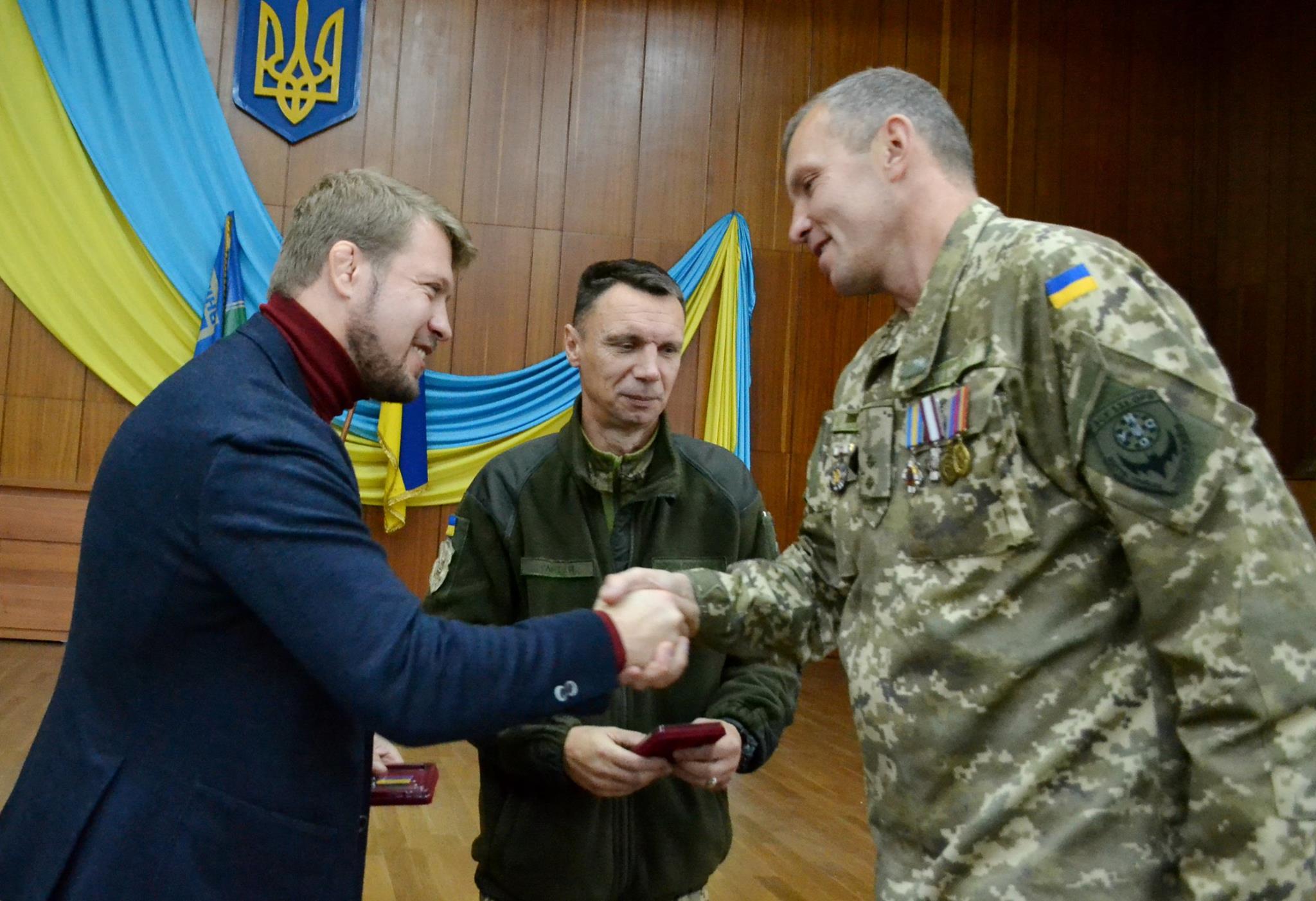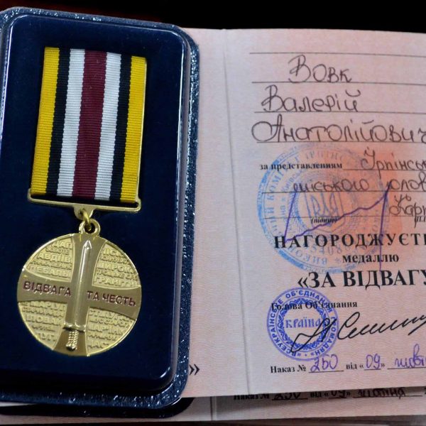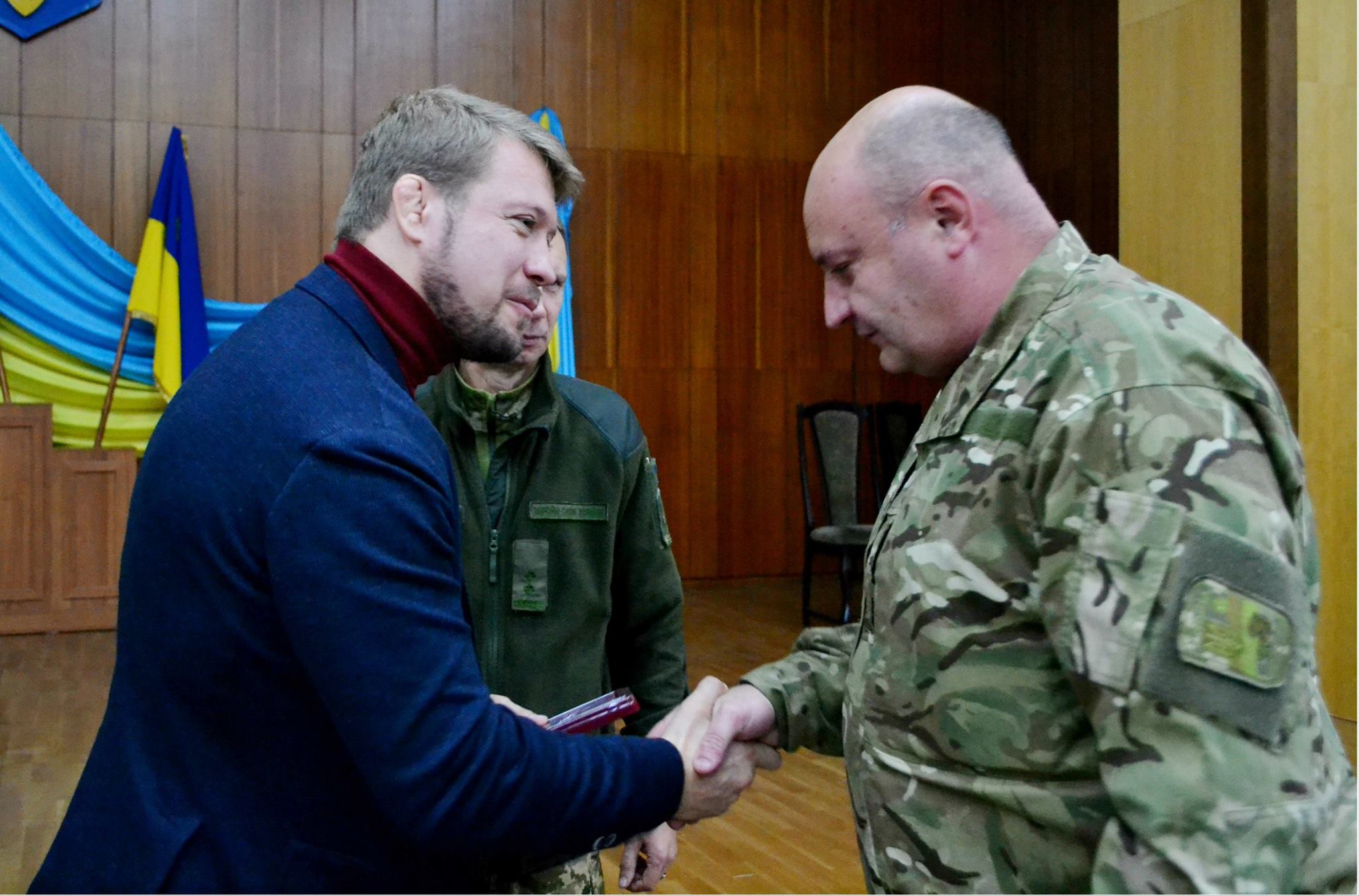 Серед нагороджених – 11 працівників комунального підприємства «Муніципальна варта» на чолі з його керівником Валерієм Вовком. «Валерій Анатолійович був командиром батальйону «Київська Русь». Він очолив батальйон після того, як загинув мій друг Олександр Гуменюк, – сказав під час нагородження Дмитро Христюк. – І я дуже дякую, що він, після того як демобілізувався, прийняв рішення розбудовувати наше місто й очолив комунальне підприємство».