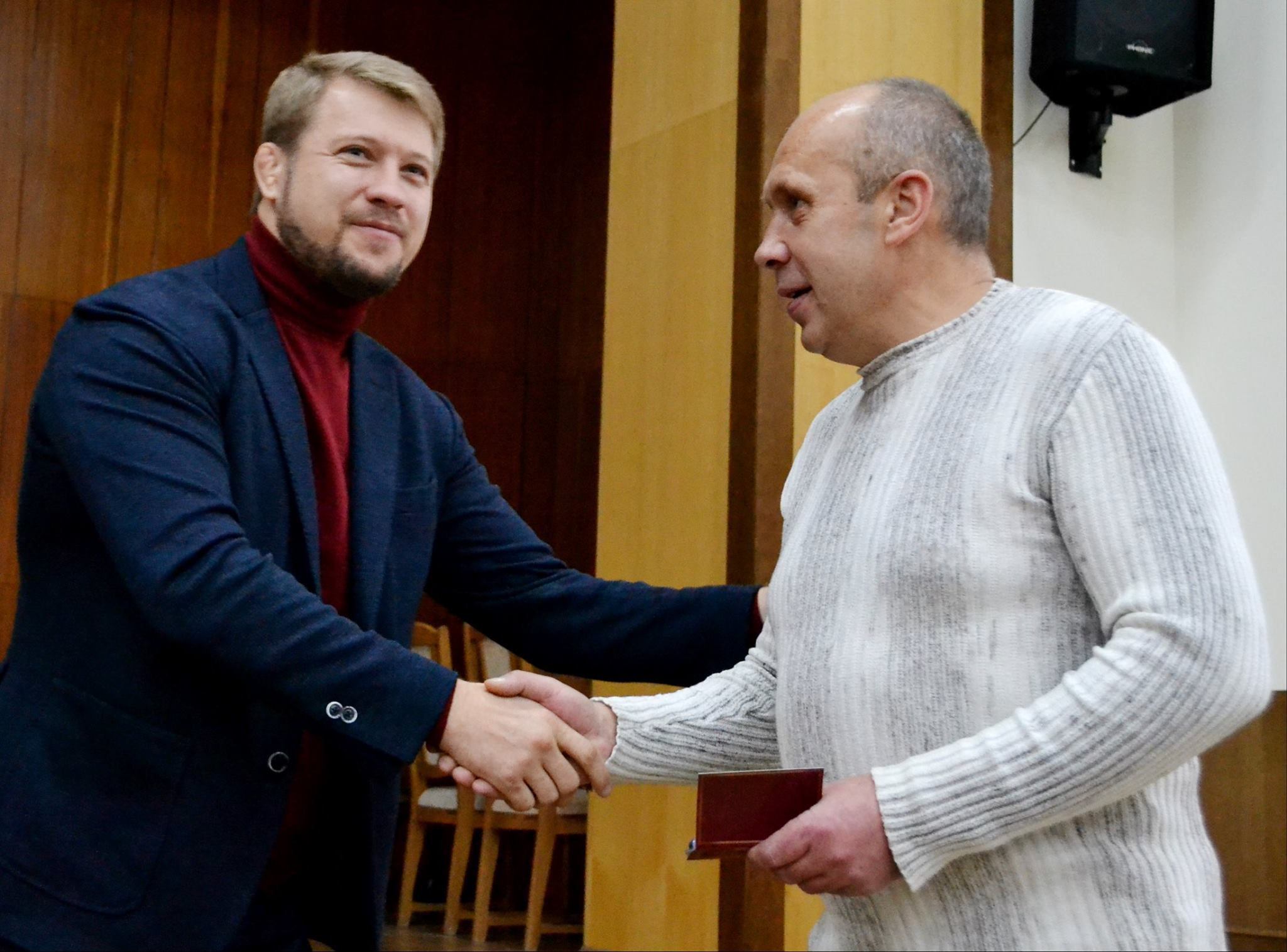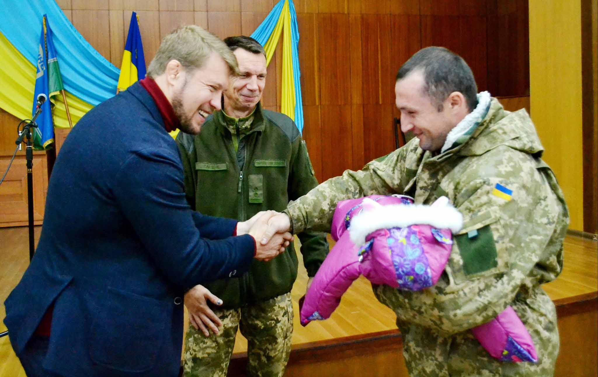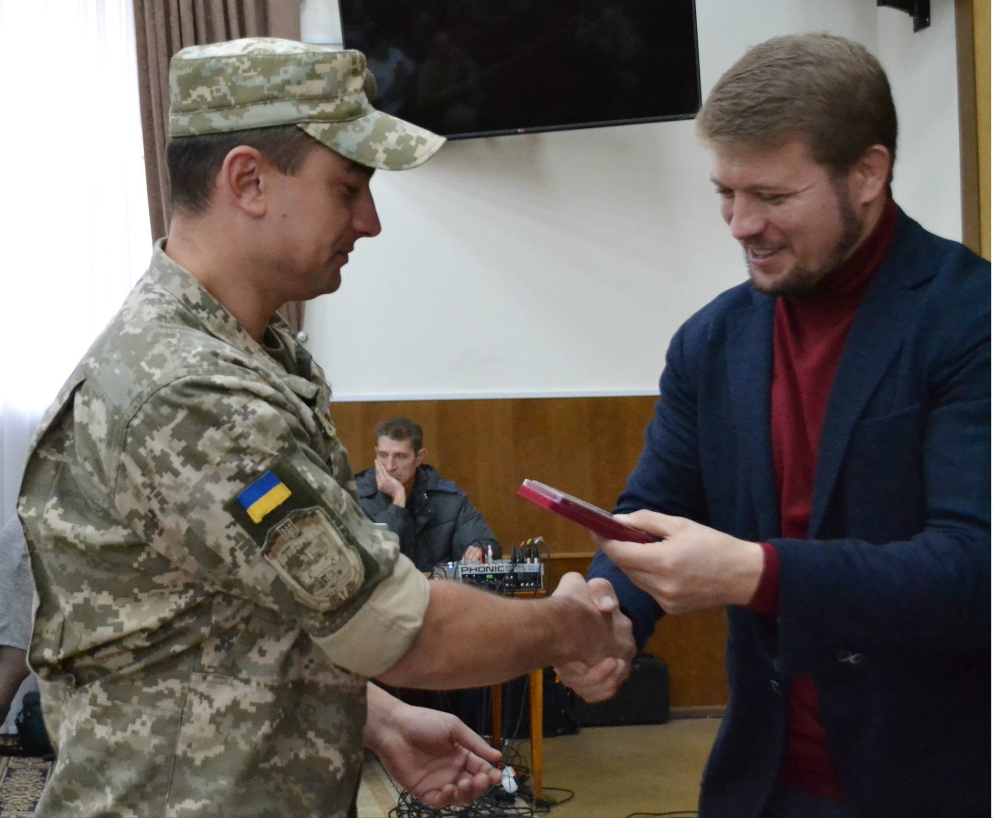 Серед нагороджених – 11 працівників комунального підприємства «Муніципальна варта» на чолі з його керівником Валерієм Вовком. «Валерій Анатолійович був командиром батальйону «Київська Русь». Він очолив батальйон після того, як загинув мій друг Олександр Гуменюк, – сказав під час нагородження Дмитро Христюк. – І я дуже дякую, що він, після того як демобілізувався, прийняв рішення розбудовувати наше місто й очолив комунальне підприємство».